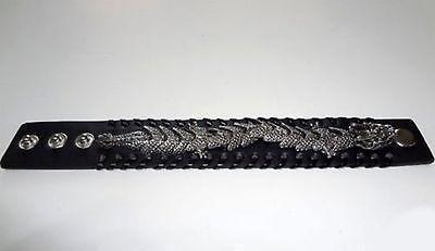 Black Leather Silver Colour Dragon Bracelet Wristband Bangle Mens Womens Jewelry
