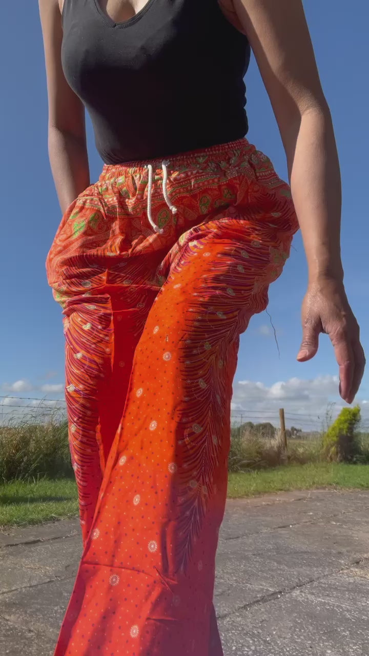 Ladies Mens Womens Orange Harem Pants Holiday Sun Travel Beach Light Trousers