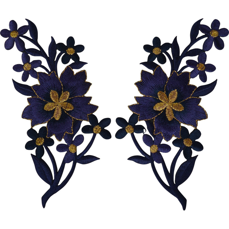 Pair of Flower Patches Iron Sew On Clothes Jeans Flowers Embroidery Patch Badge