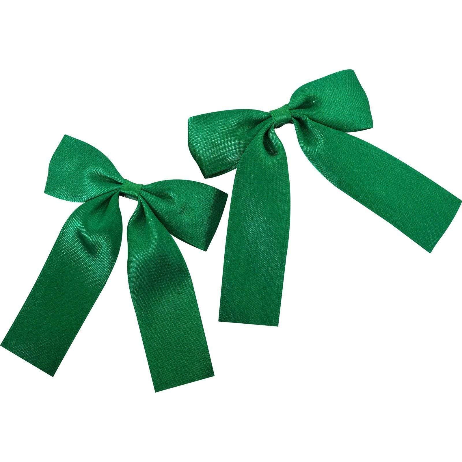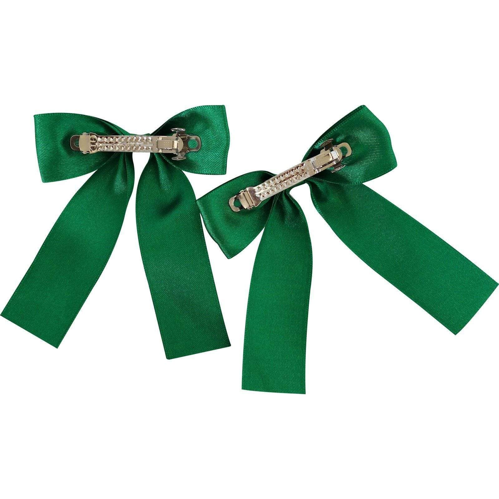 Pair of Green Hair Bow Ribbon Clips Grips Girls Childrens Kids Bows Accessories