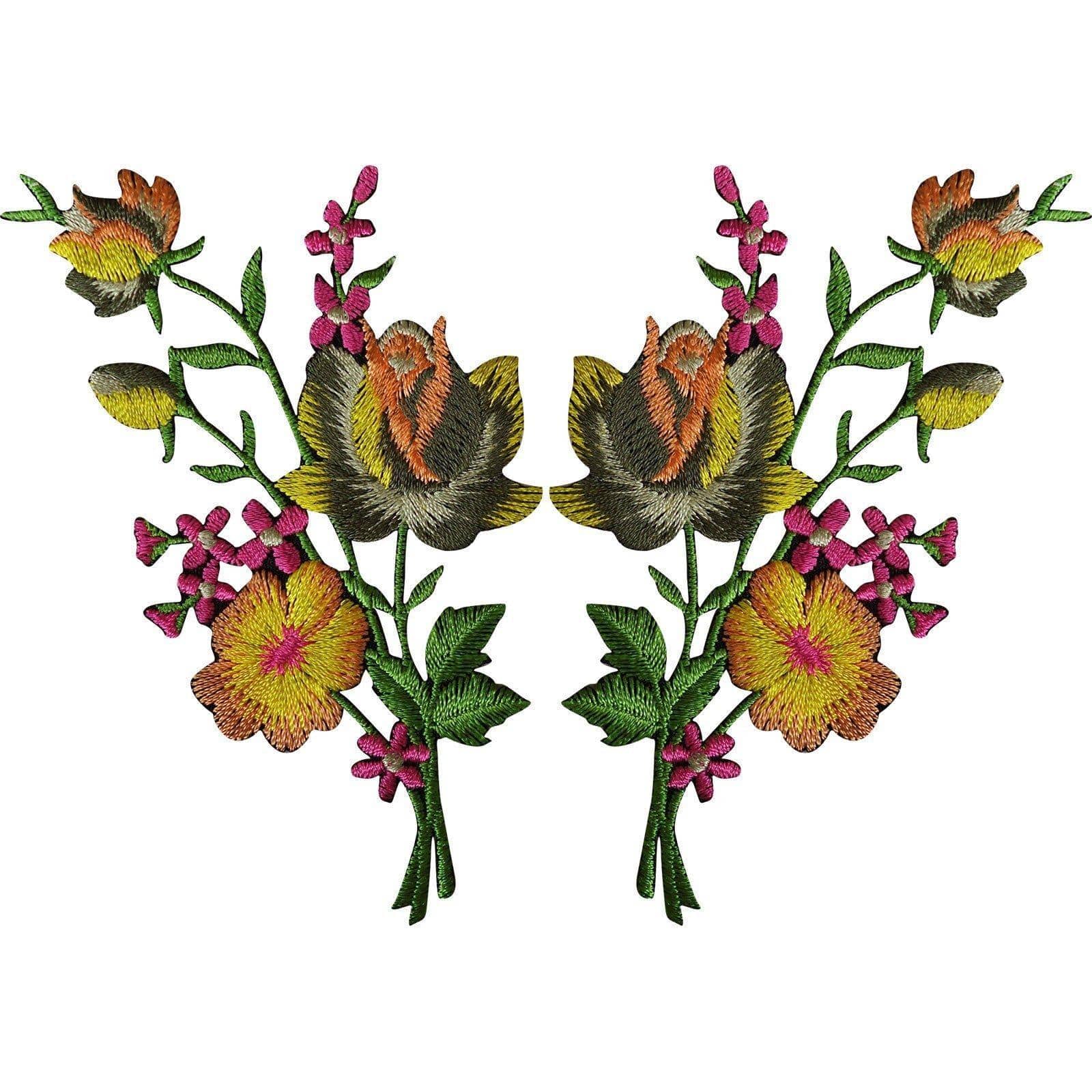 Pair of Rose Flower Patches Iron Sew On Flowers Embroidered Patch Badge Crafts